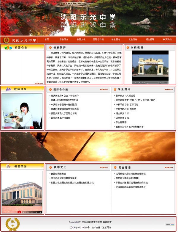 沈陽東光中學(xué)創(chuàng)辦于1937年,隸屬于沈陽教育局,悠久的辦學(xué)歷史,特色的辦學(xué)理念,完善的教學(xué)設(shè)施,使今天的東光中學(xué)成為振興遼寧經(jīng)濟(jì)、振興民族教育、提高民族素質(zhì)的搖籃。學(xué)校周邊綠樹環(huán)繞,交通便利,為學(xué)子營造了優(yōu)雅別致的學(xué)習(xí)環(huán)境。目前學(xué)校投巨資,改建了教學(xué)樓、綜合樓、教室里安裝了現(xiàn)代化教學(xué)設(shè)備—投影儀、電腦及主控設(shè)備,使每個(gè)學(xué)生都能夠享受到信息化時(shí)代的優(yōu)質(zhì)課堂教學(xué)。學(xué)校還開設(shè)了選修課,實(shí)行學(xué)分制,學(xué)生實(shí)現(xiàn)個(gè)性化發(fā)展搭建了平臺。
